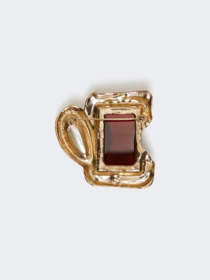 Brosche aus emailliertem Metall und Glas – ROT
