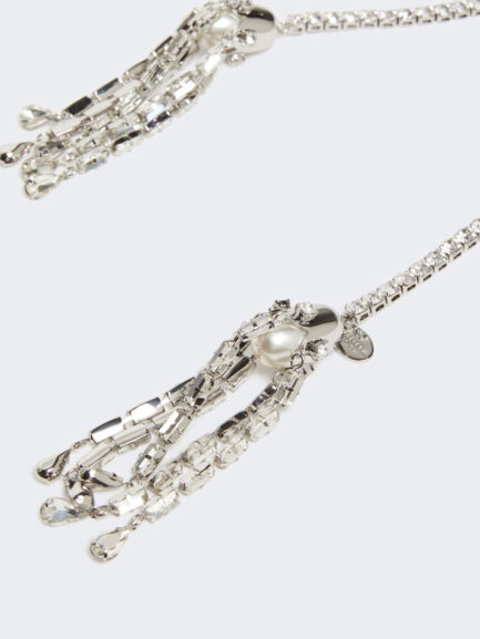 Halskette mit Quasten und Strasssteinen – SILBER