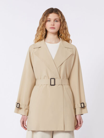 Kurzer Trenchcoat aus wasserabweisendem Canvas – BEIGE