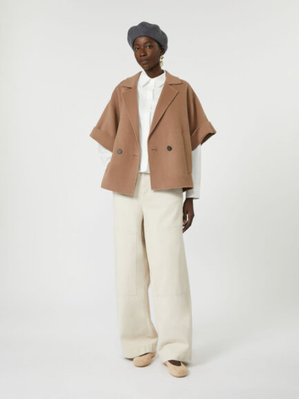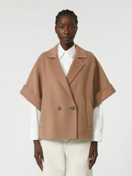 Kurzer Wollmantel aus Breitgewebe – HELLBRAUN