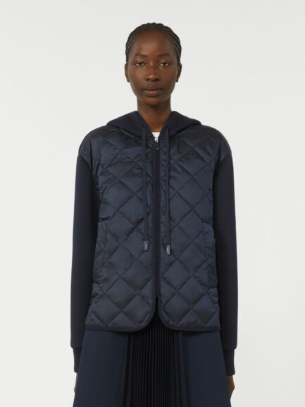 Wattierte Kapuzenjacke aus wasserabweisendem Canvas und Jersey – MARINEBLAU