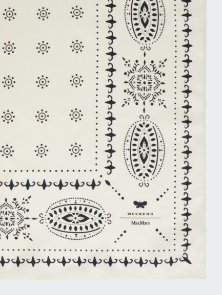 Bedruckter Seidenschal mit Fransen – Elfenbein