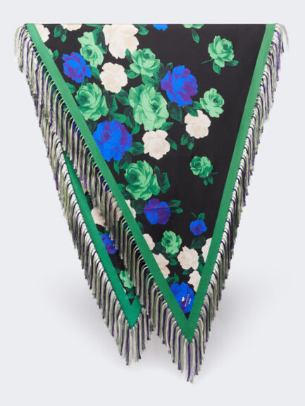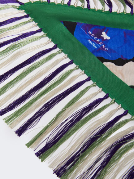 Bedruckter Seidenschal mit Fransen – Dunkelgrün