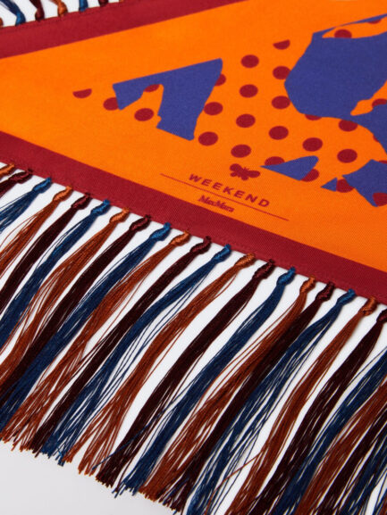 Bedruckter Seidenschal mit Fransen – BRAUN-ORANGE