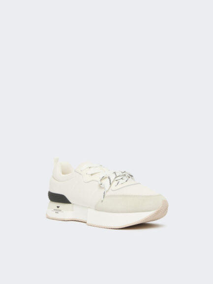 Sneaker mit Logo aus technischem Material – Elfenbein