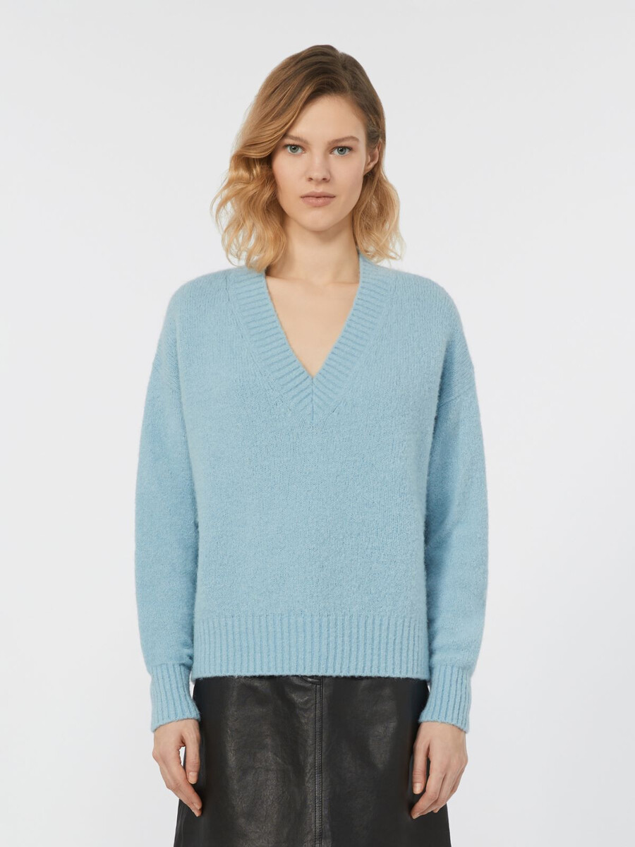 Locker geschnittener, mittellanger Pullover.