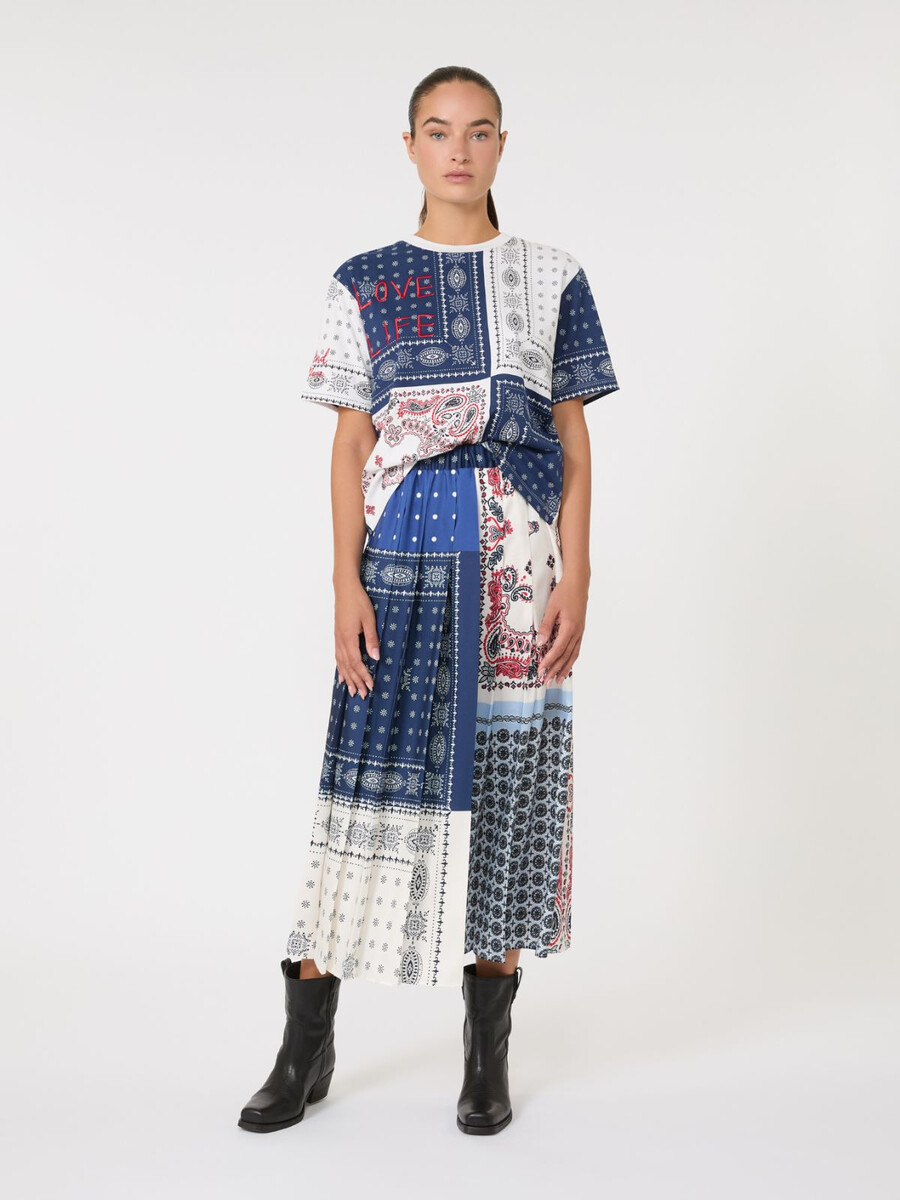 Langer Rock mit tailliertem, plissiertem Einsatz.