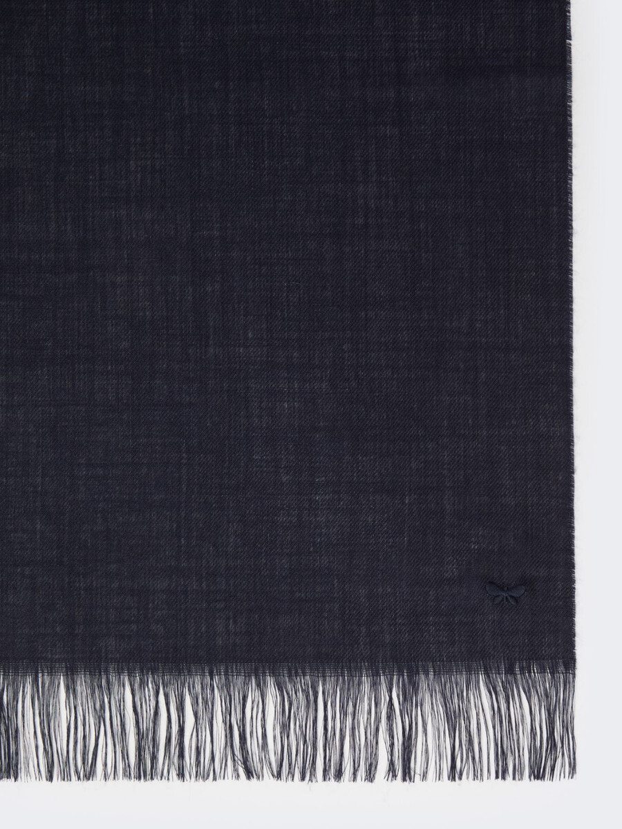 Einfarbige, rechteckige Stola mit einem kleinen, Ton-in-Ton gestickten Schmetterlingslogo auf einer Seite.