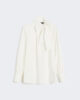 Bluse mit femininer Silhouette und Schleife am Hals.