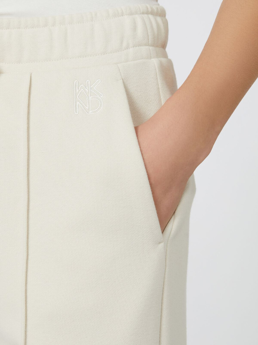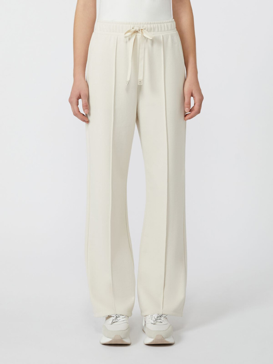 Weich strukturierte Hose mit weitem Bein und aufgenähter Falte vorne.