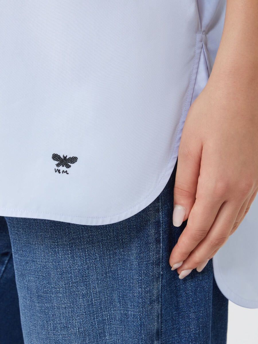 - Kleines, gesticktes Schmetterlingslogo am linken Saum