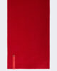Gestrickter Schal mit Logo-Etikett aus Ripsband am Ende.