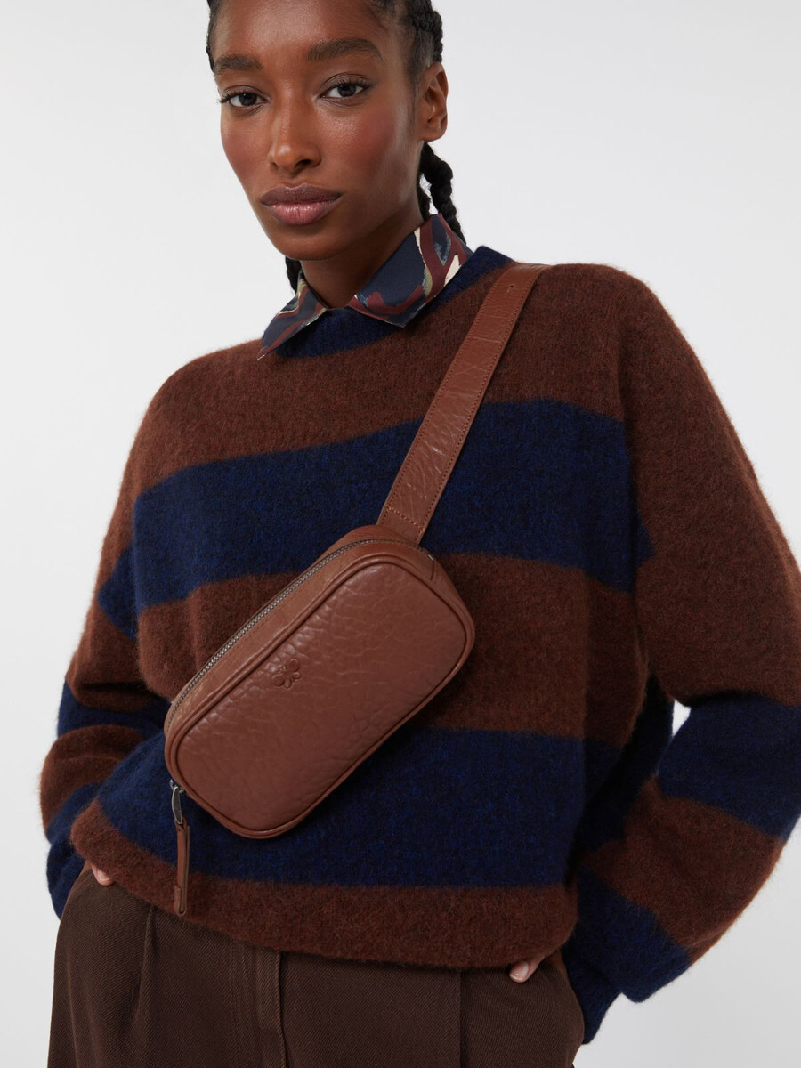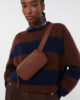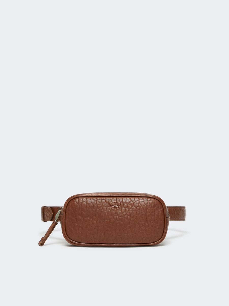 Kompakte Beuteltasche mit abgerundeten Kanten. Dank des verstellbaren und abnehmbaren Gürtels kann sie um die Taille, quer über den Körper oder als Beuteltasche getragen werden.