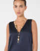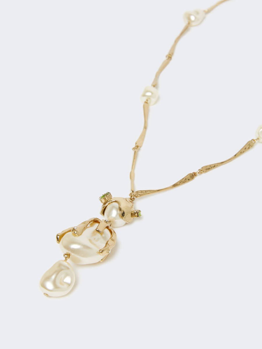 Unregelmäßig geformte Choker-Halskette mit Glasdetails und einem großen Anhänger.
