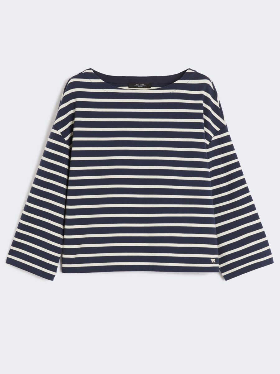 Kastig geschnittenes T-Shirt mit U-Boot-Ausschnitt.