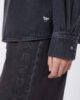 Übergroßes Hemd mit klassischen, tabakfarbenen Denim-Nähten und aufgesetzter Brusttasche links.