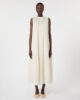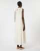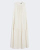 Langes Kleid mit Volantsaum und figurbetonenden Raffungen.