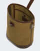 Kleine Beuteltasche mit ovalem Boden im Stil der 70er/80er Jahre. Abnehmbarer Schulterriemen aus Leder – sowohl über der Schulter als auch quer über dem Körper tragbar – mit verstellbarem Verschluss und D-Ring zum Befestigen kleiner Lederwaren.