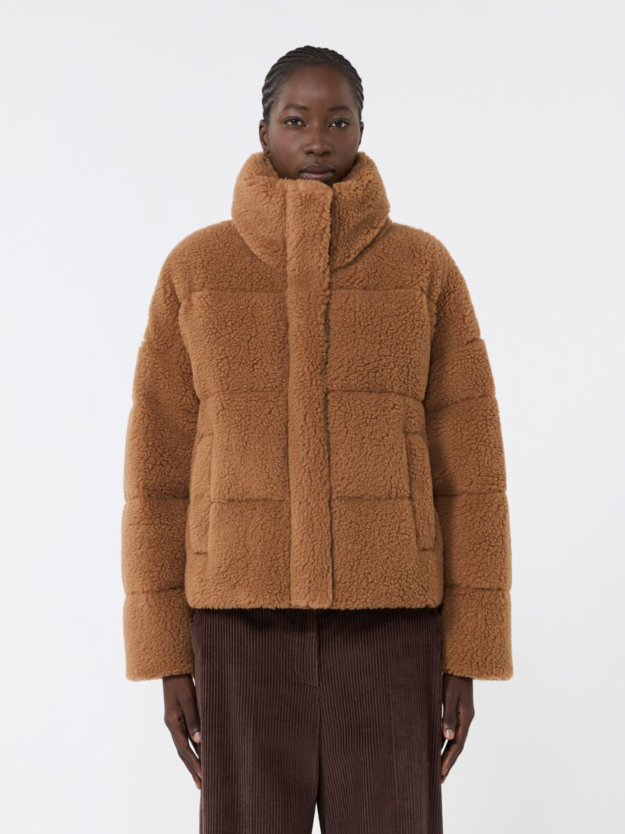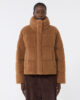 Einreihige, kurze Daunenjacke mit weicher Textur und kastenförmigem Schnitt.