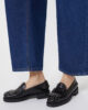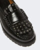 Penny-Loafer mit doppelten Fransen ober- und unterhalb des Vorderblatts sowie aufgesetzten Mikronieten.