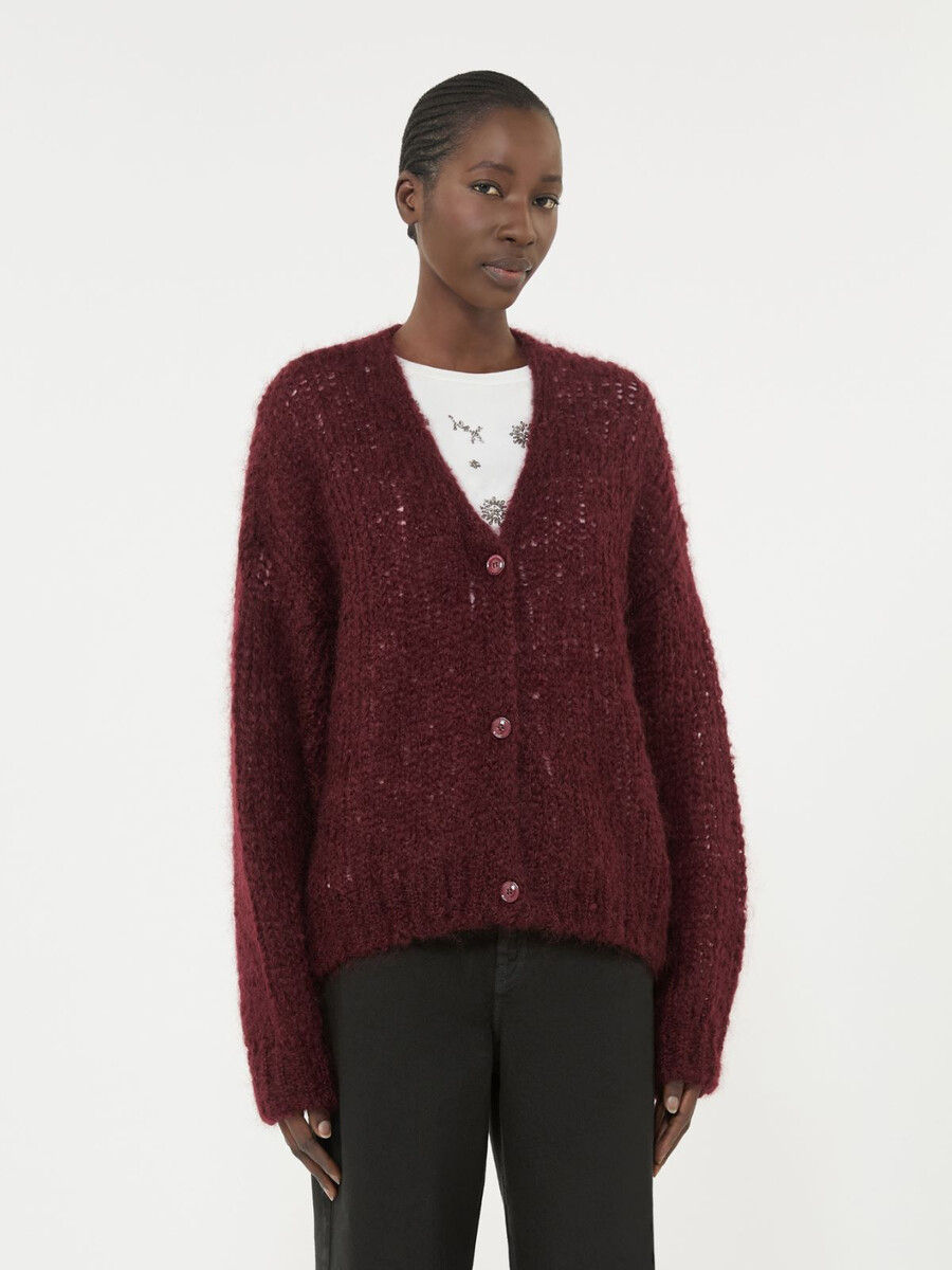 Übergroße, glatt rechts gestrickte Strickjacke.