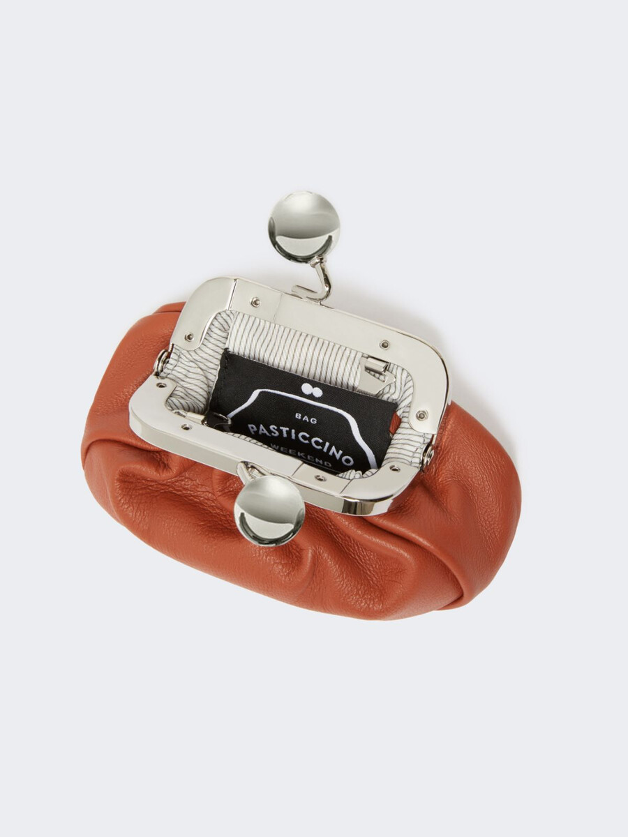 Nano Pasticcino Tasche mit rückseitigem Verschluss, der sich einfach an Weekend Max Mara Taschen befestigen lässt. Zwei abnehmbare Schulterriemen mit Verschluss sind im Lieferumfang enthalten: ein langer und ein kurzer.