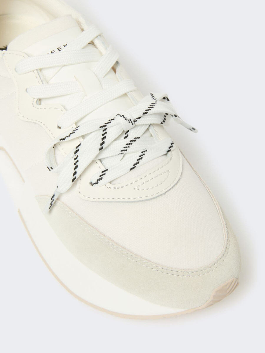 Ultraleichte Urban-Sneaker mit Einsätzen aus Spaltleder und einer markentypischen, farblich abgesetzten Außensohle an der Ferse.
