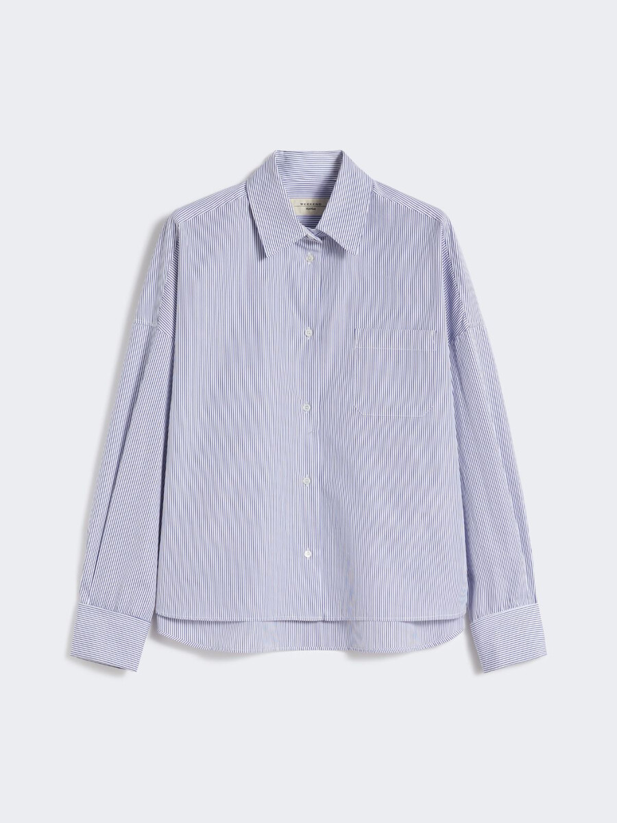 Übergroßes Hemd, tailliert, mit abgerundetem Saum, der hinten länger ist.