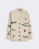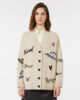 Übergroße Strickjacke mit Intarsienmuster auf Vorderseite und Ärmeln.