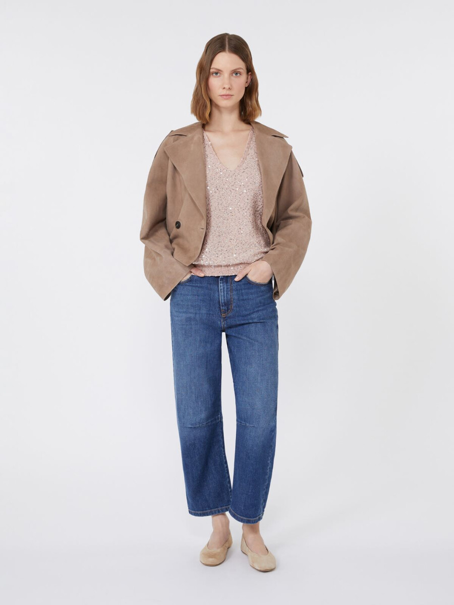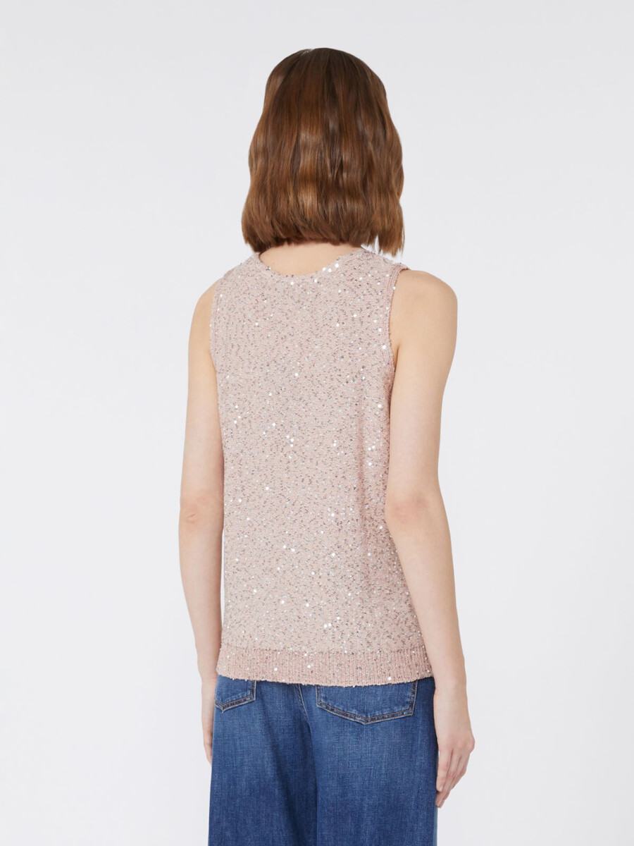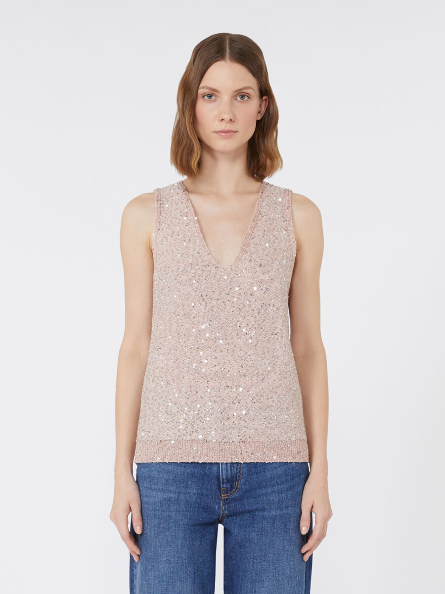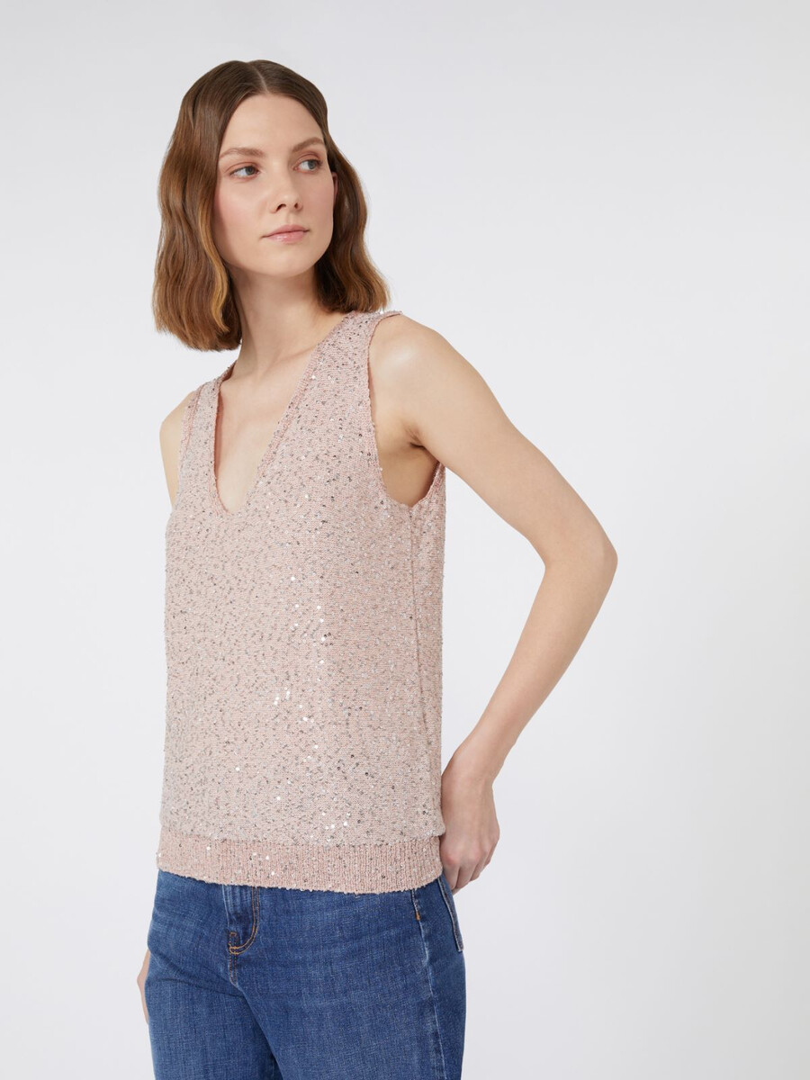 Ärmelloses Top mit durchgehender Paillettenstickerei.
