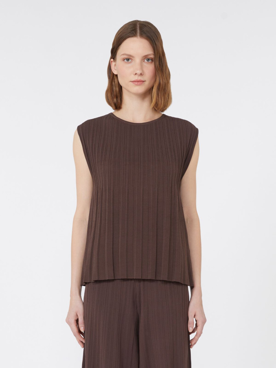 StartseiteWeekend Max Mara KnitwearPlissee-T-Shirt aus Garn – SCHOKOLADE
