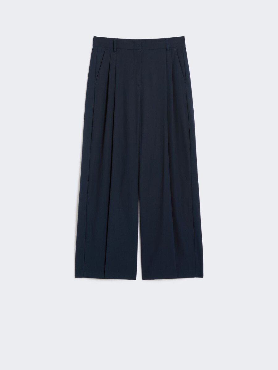 Weit geschnittene Hose mit doppelten Abnähern und verkürztem Bein (bis über den Knöchel).