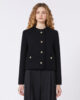 Einreihige, kurze Jacke mit markanter, leicht geprägter Struktur und Fransenbesatz.