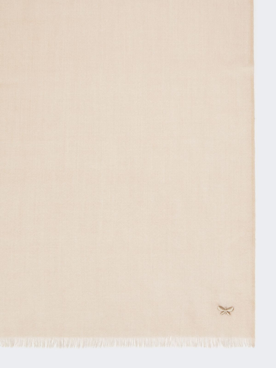 Rechteckige Stola mit einem kleinen, Ton-in-Ton gestickten Schmetterlingslogo an einer Seite des Saums.