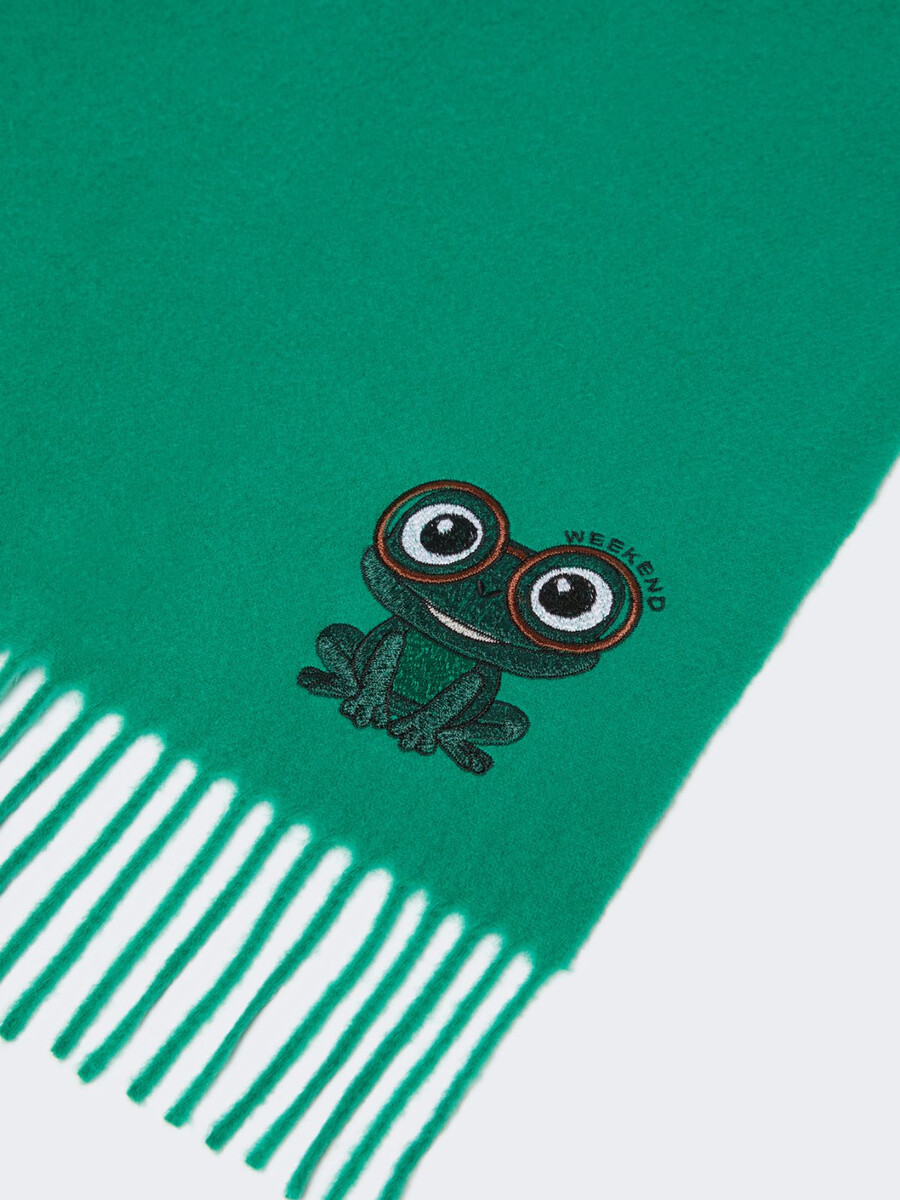 Maßgefertigte rechteckige Stola mit Stickerei am Saum.