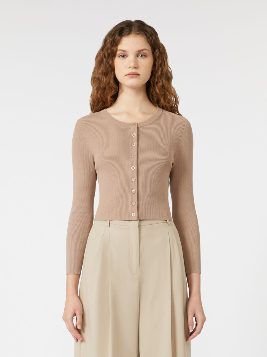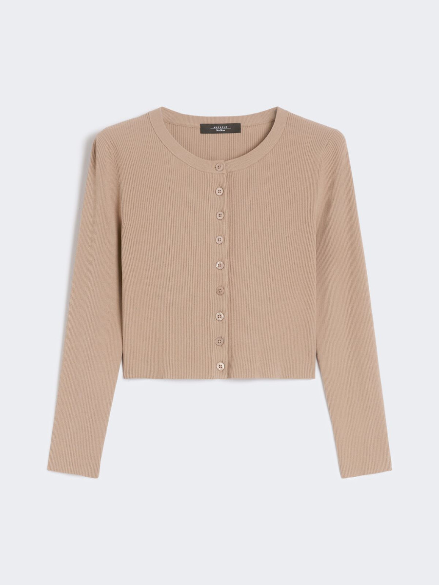 Kleine, gerippte Strickjacke mit verkürzter Taille.
