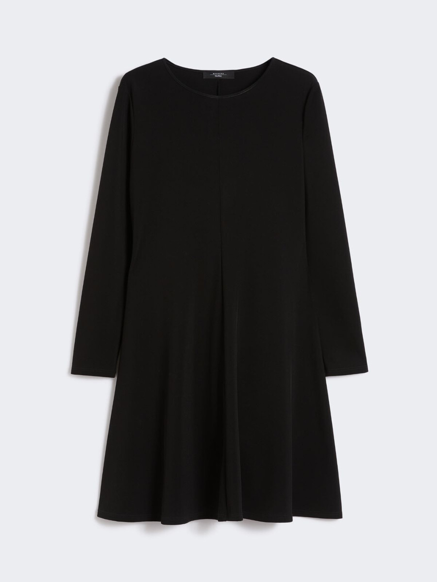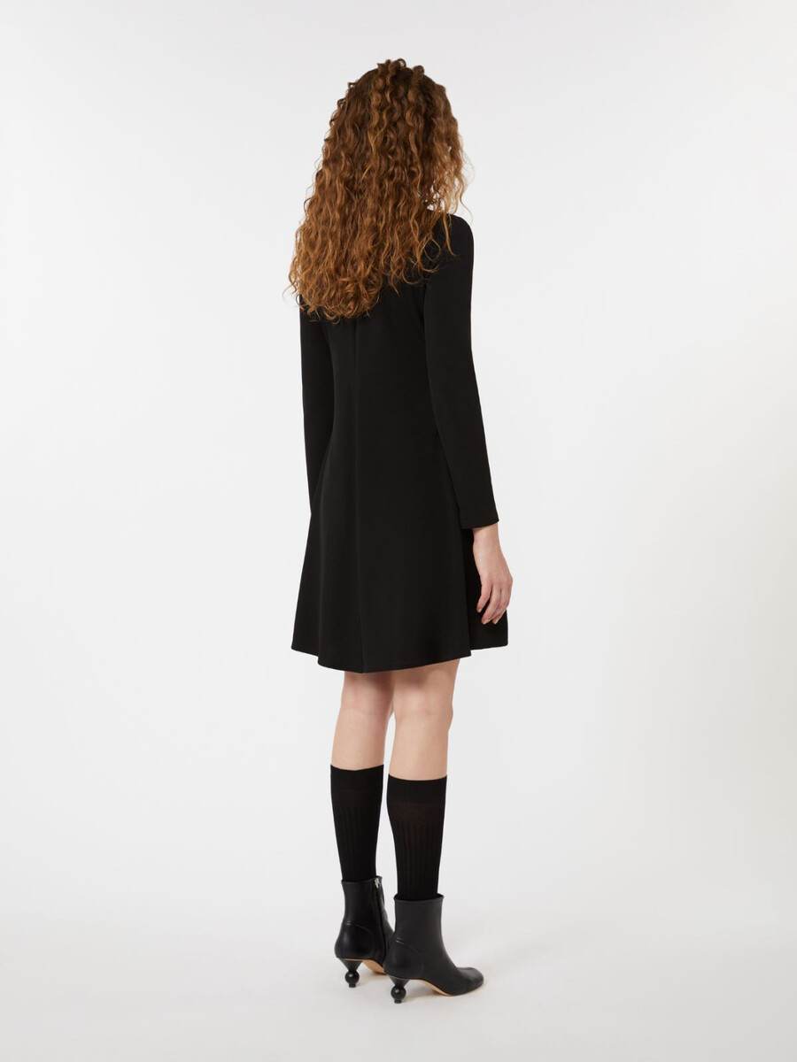 Kurzes Kleid mit A-Linien-Silhouette. Figurbetont und am Saum leicht ausgestellt.