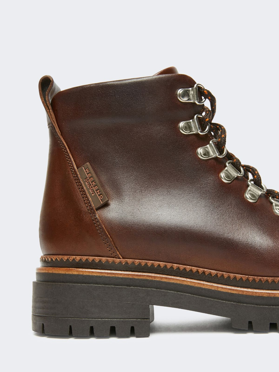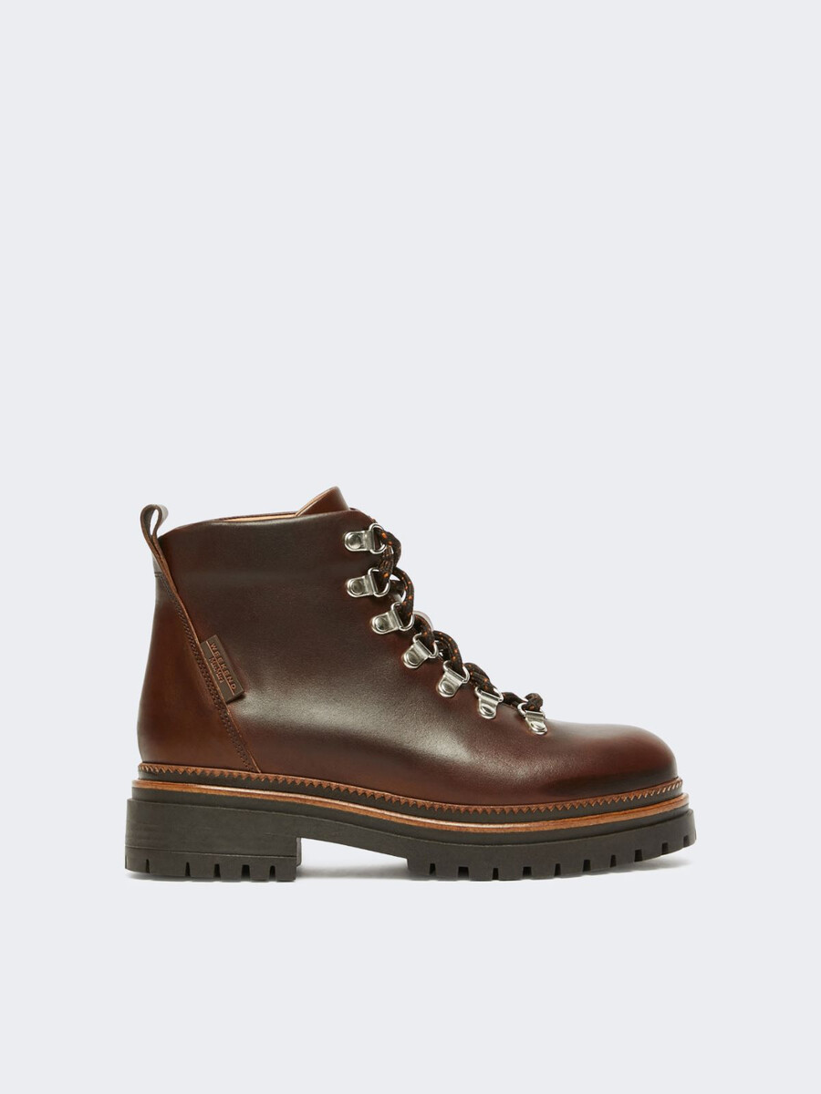 Trekking-inspirierte Schnürstiefelette mit Profilsohle und Metallösen.