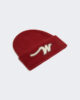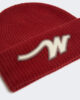 Strickmütze, individuell gestaltet mit einem großen „W“-Aufnäher auf der Vorderseite.