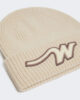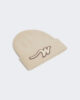 Strickmütze, individuell gestaltet mit einem großen „W“-Aufnäher auf der Vorderseite.