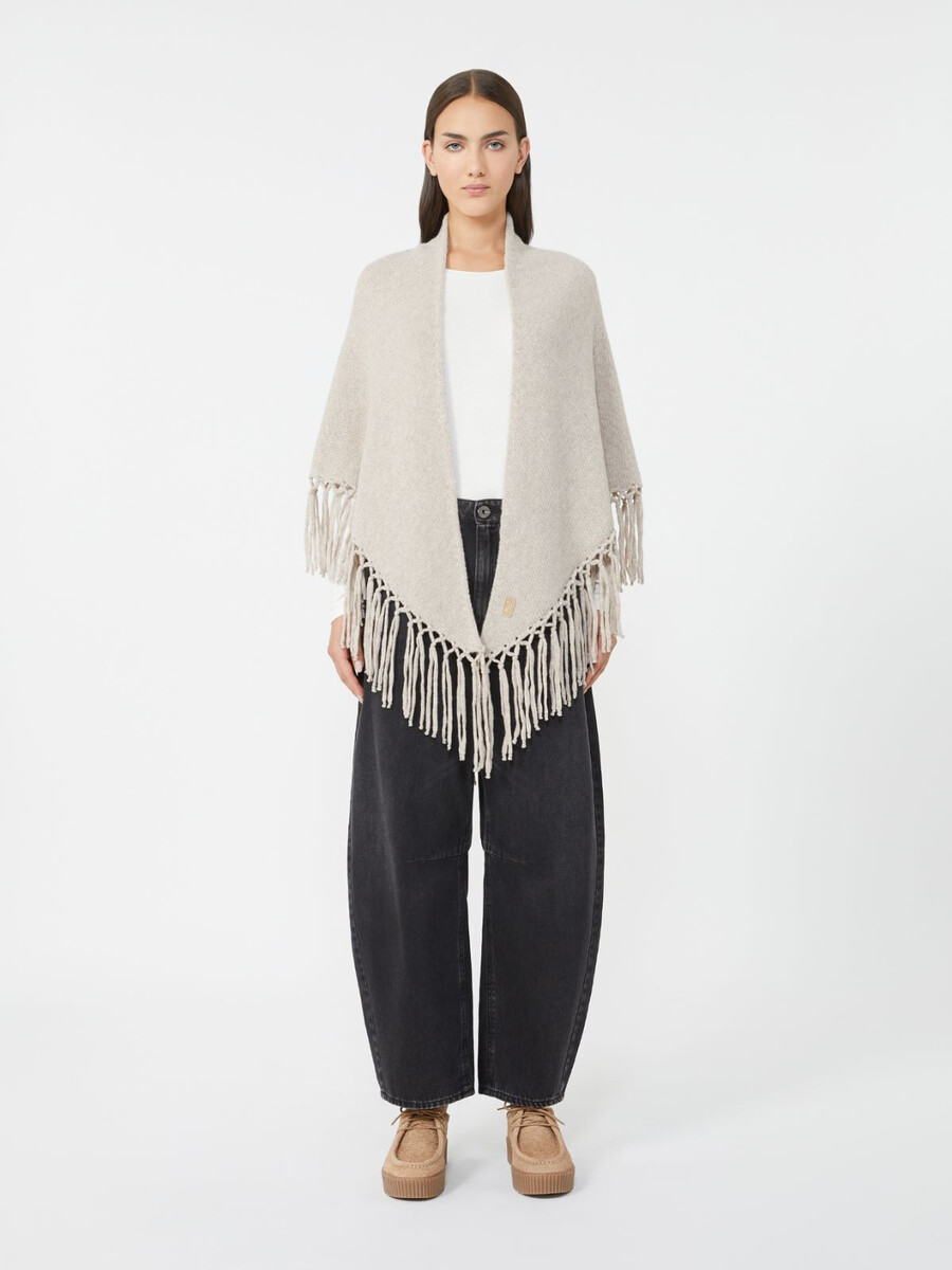 Wollschal mit Fransen – BEIGE